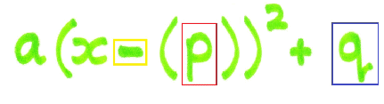 It is often known as the turning point form of a quadratic; if the expression is written with a minus sign (in the yellow box) then the value of p (in the red box) and the value of q (in the blue box) are the x and y coordinates of the turning point.